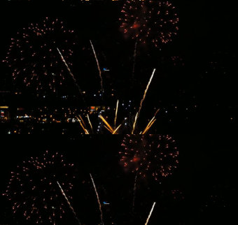 城市夜空中放煙花慶祝節(jié)日實拍視頻