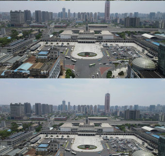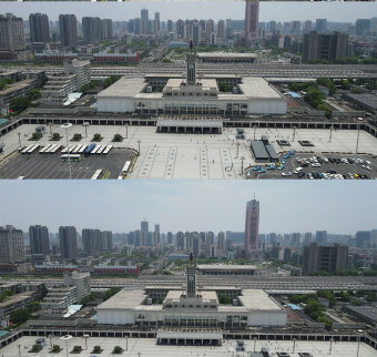 航拍湖南長沙火車站交通地標(biāo)建筑