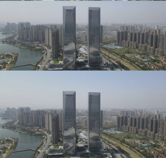 航拍湖南長沙梅溪湖金茂雙塔地標(biāo)建筑