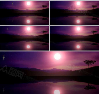 1080紅色太陽水波大氣海鷗飛過背景視頻