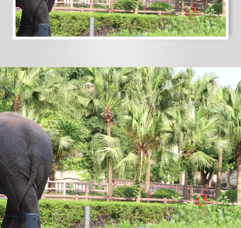大象身處椰林田園間