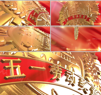 三維立體獎章五一勞動節(jié)宣傳片頭視頻模板